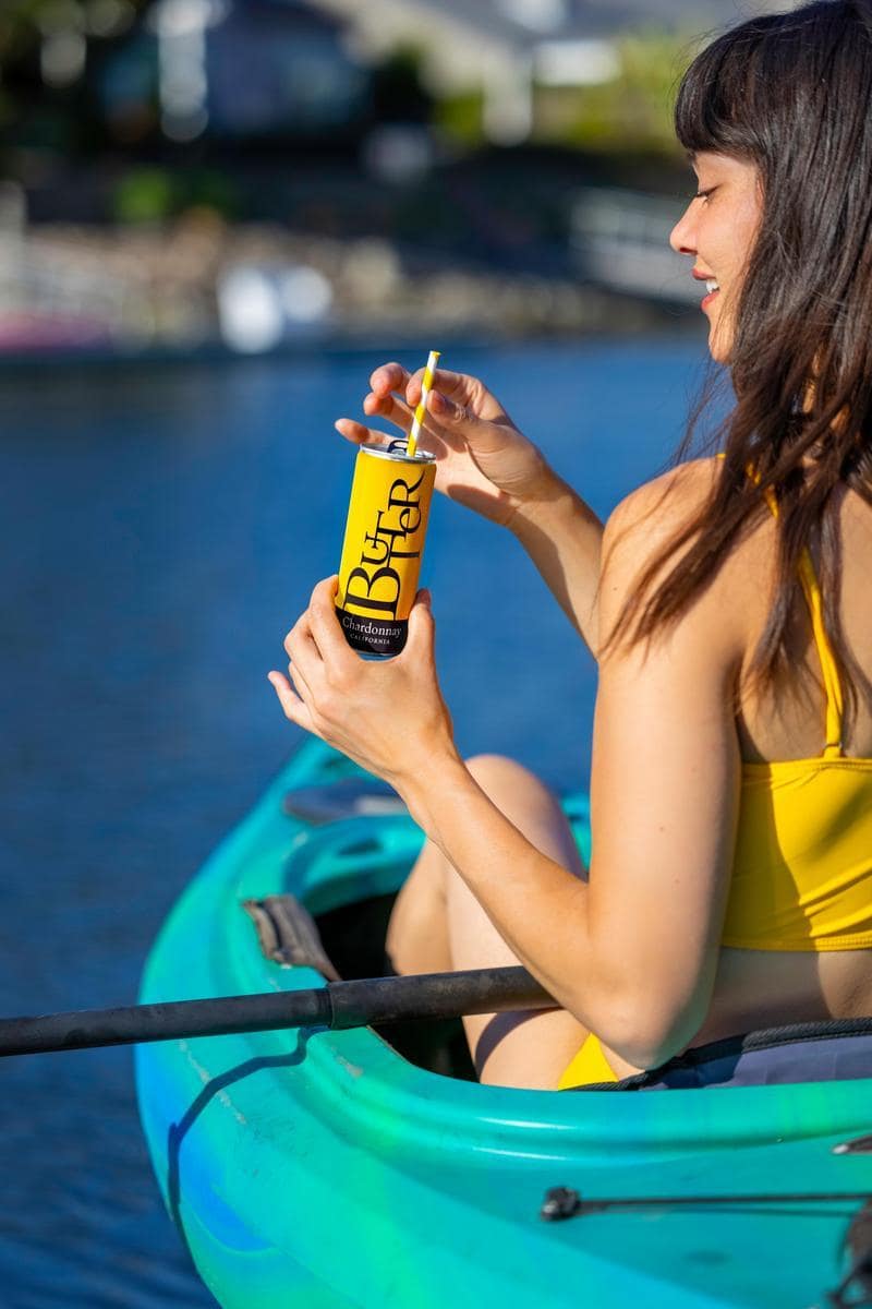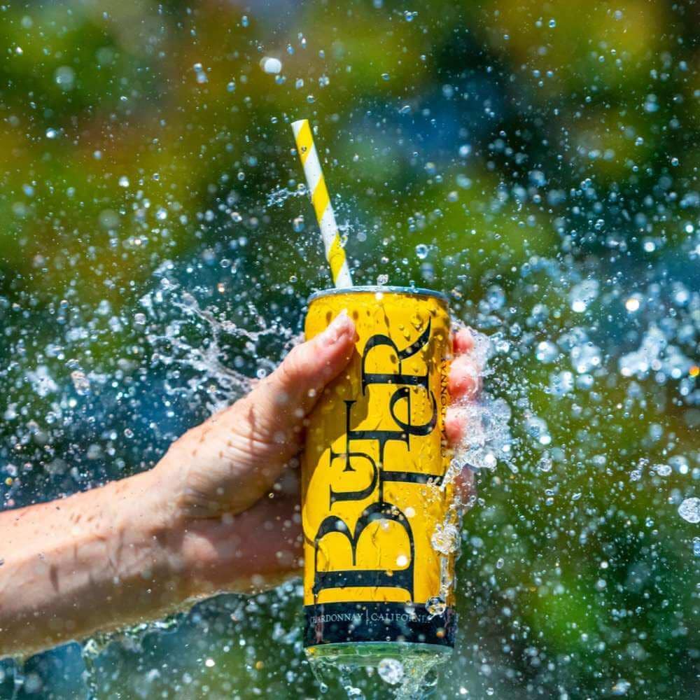 Available in cans and half bottles—each can pours a glass and a half. Made for weekends away, pool days, and moments you want your fav Butter in a perfectly sized pour.