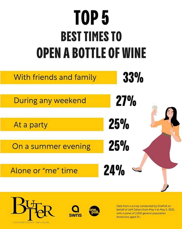 In fact (and we quote), “Almost 24% agreed their favorite moment to enjoy wine is ‘me’ time, which is a shift from pre-pandemic. In fact, 72% responded they open a bottle of wine more on their own now compared to three years ago.”