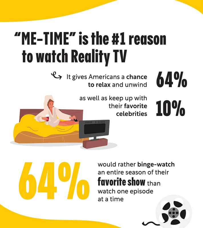 Americans love to wind down after work by watching their favorite Reality TV shows. Even 64% of respondents said that they use Reality TV as a time to relax. A glass of wine plus must-see Reality TV definitely sounds like a chill evening to us.
